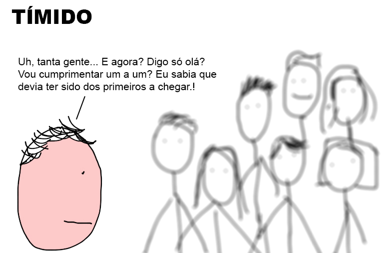 A definição mais comum de timidez é medo de ser julgado pelos outros. É este medo que causa aquela sensação desconfortável de vergonha e apreensão que cria uma espécie de buraco negro no nosso peito. Há quem a possa entender como falta de confiança, mas pode depender. Já disse que também sou tímido? É verdade, mas, ao contrário da introversão que faz parte da minha personalidade, a timidez é algo que tenho conseguido trabalhar (ou disfarçar), não é intrínseca à minha personalidade. Aliás, as pessoas acham mais depressa que sou mal encarado do que tímido (e eu ter resting bitch face não ajuda).